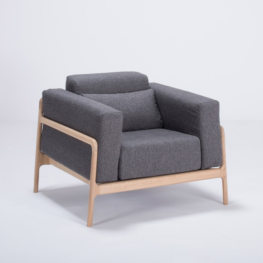 Laat u verleiden door het design en het comfort van de Fawn fauteuils en banken van Gazzda. Met zijn massief houten structuur, zijn luchtige en minimalistische ontwerp, zorgt het ervoor dat u de open en aangename sfeer van uw woonkamer behoudt, zonder de indruk te wekken dat deze rommelig is. De Fawn fauteuil in eiken en antraciet stof past perfect bij de bank uit dezelfde reeks of kleedt een te streng kantoor aan. Verkrijgbaar in andere kleuren. Ontdek nu de rest van het assortiment op Moodntone.