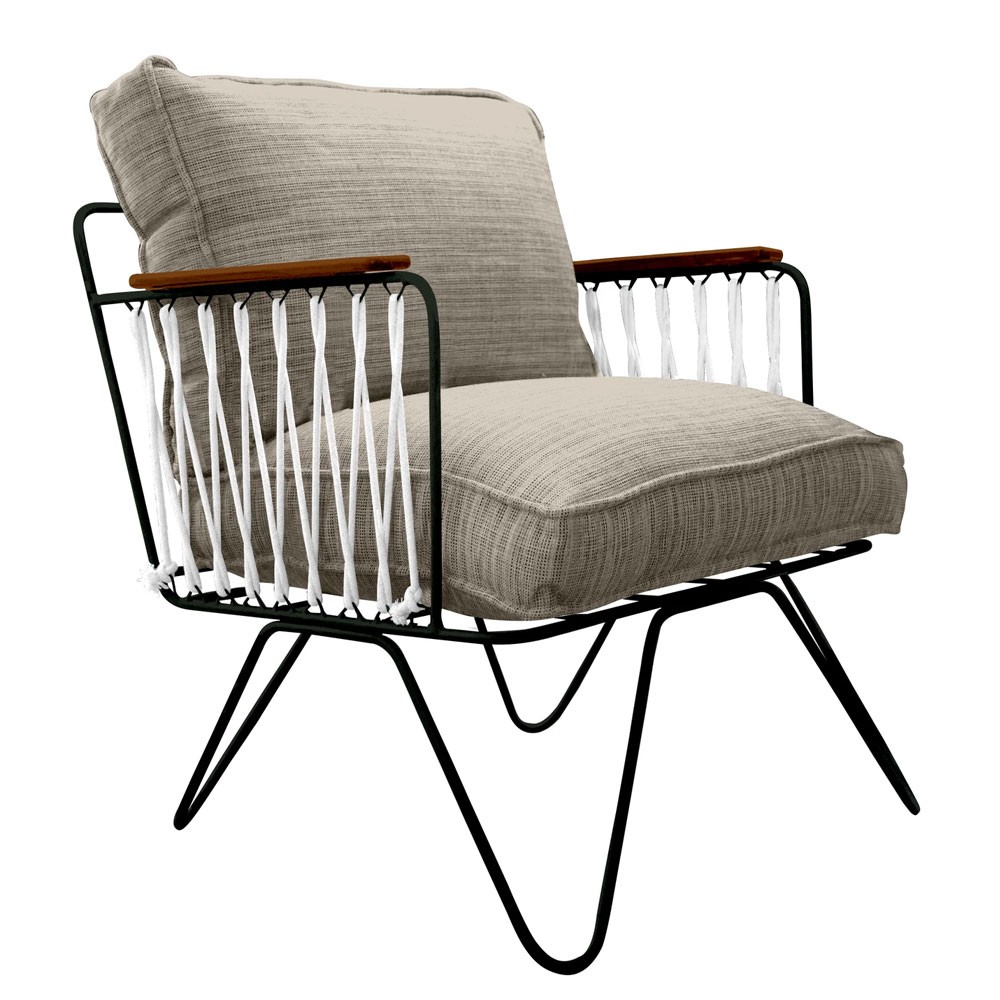 Comfortabel dankzij de royale zitting en de grote zachte rugleuning, doen de witte katoenen touwen denken aan die van zeilboten, terwijl het gevlekte canvas van de kussens ervoor zorgt dat u lekker wilt luieren aan de Middellandse Zeekust.
