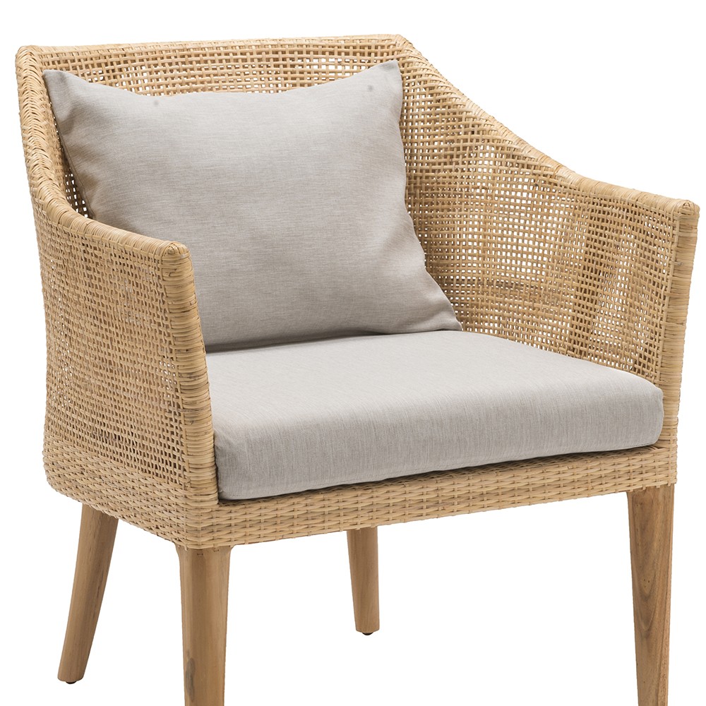 Deze Saigon rotan fauteuil combineert robuustheid dankzij zijn natuurlijke teakstructuur en verfijning dankzij zijn opengewerkte rotan spalk geweven. Deze fauteuil is het resultaat van een prachtig werk dat volledig met de hand is gedaan. Te gebruiken rond een tafel, tegenover een bureau, als zitverhoger in de woonkamer, in een veranda, deze Saigon rotan stoel zal een natuurlijke en eigentijdse toets aan je interieur geven.