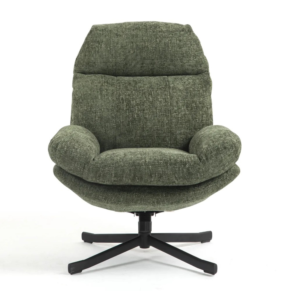 De "CHILL" fauteuil combineert elegantie en ontspanning: dankzij zijn 360° draaivoet en geïntegreerde verstelbare rugleuning biedt hij optimale bewegingsvrijheid. De comfortabele stoffen bekleding (100% polyester) en brede zitting nodigen uit om te ontspannen, terwijl het frame van metaal en multiplex zorgt voor stevigheid en duurzaamheid. Hij is verkrijgbaar in verschillende kleuren (zand, lichtgrijs, blauw, groen) en zal geweldig staan in een moderne woonkamer, leeshoek of gezellige hoek.