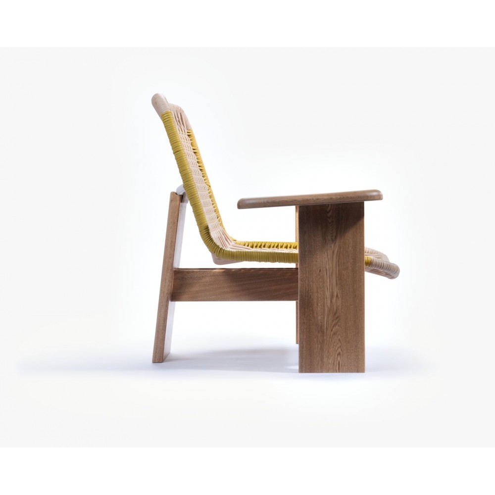 Elke stoel wordt gemaakt in Santa Marta, aan de Caribische kust van Colombia, door lokale ambachtslieden. De stoel is geweven van gerecyclede PVC touwen die zorgvuldig om een gepoedercoat stalen buizenframe zijn gewikkeld. Het resultaat is een stoel die bestendig, ethisch en visueel opvallend is.