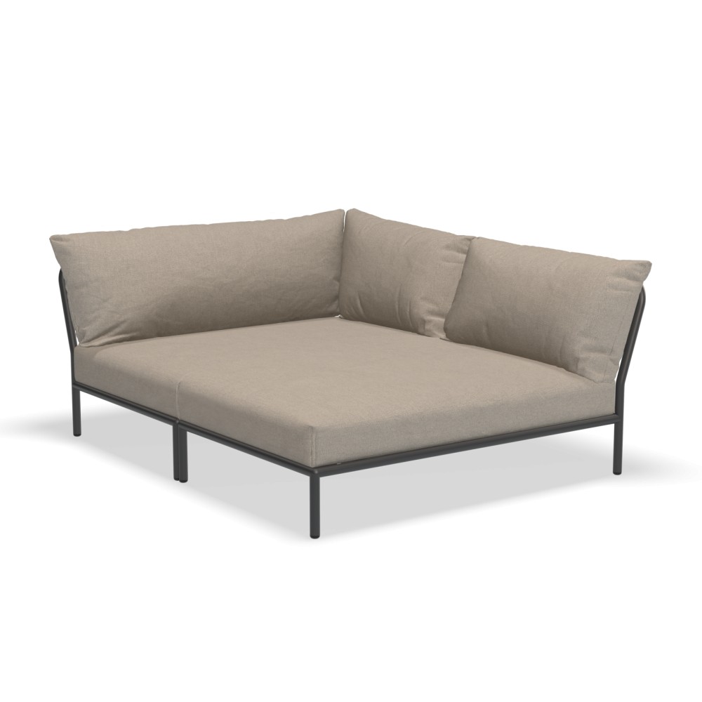 Voeg een vleugje modern comfort toe aan je tuinmeubelen met de rechter comfort hoek uit de Level 2 serie van HOUE. Zoals de naam al doet vermoeden, is Level 2 een evolutie van de Level bank, herkenbaar aan de meer royale en ontspannen vorm van de kussens, voor nog meer comfort.