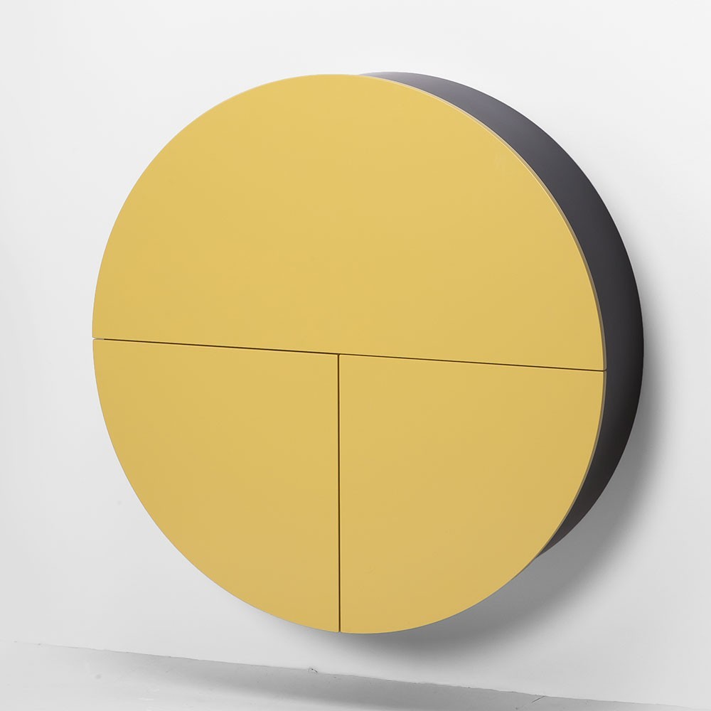 De Pill yellow & black wandbureau, ontworpen voor EMKO, wordt aan de muur bevestigd en verandert in een oogwenk in een functionele werkplek, een commode of zelfs een bar! Het rekkensysteem binnenin is zo ontworpen dat de gebruiker het gemakkelijk kan veranderen en aanpassen: het kan een laptop, bestanden en catalogi, boeken of elk ander persoonlijk item bevatten. Daarnaast is Pill voorzien van stopcontacten en de mogelijkheid om led-verlichting te integreren. De materialen en accessoires die bij de productie worden gebruikt, zorgen voor een perfecte robuustheid op kantoor. Pill past zich perfect aan elk type interieur aan, waardoor u een verborgen ruimte heeft voor uw spullen.