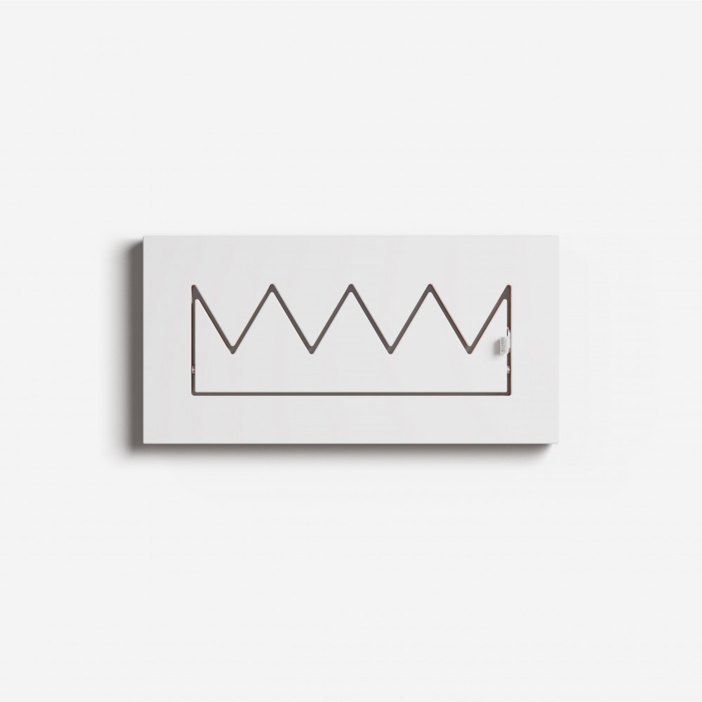 Het staat majestueus in de inkomhal en maakt van je kleerkast een onderwerp. De spikes van de kroon klappen eenvoudig weg en vormen een knijper voor een jas, sjaal, hoed en, voor wie er een heeft, een kroon.
