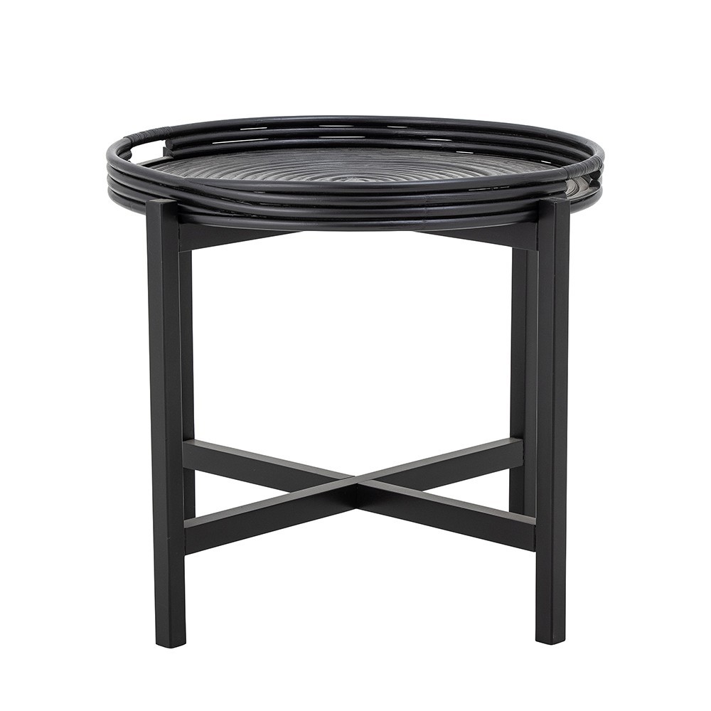 Het Milli dienbladtafeltje van Bloomingville is een zwart tafeltje met een afneembaar rotan blad dat een gezellige sfeer creëert in elk interieur.