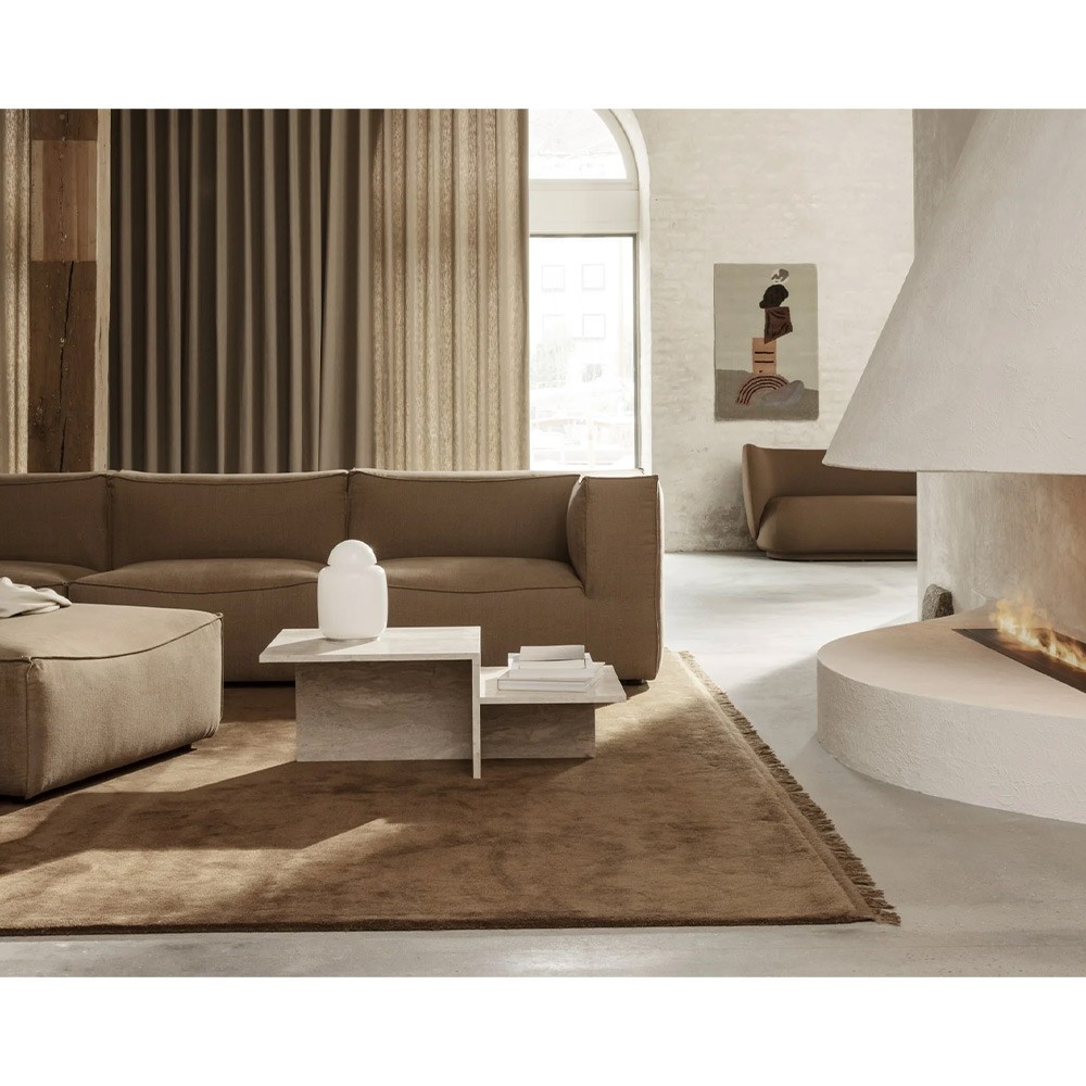 Ontdek de Distinct collectie van Ferm Living met de salontafel die oorspronkelijk geïnspireerd is op het Japanse travertin minimalisme.