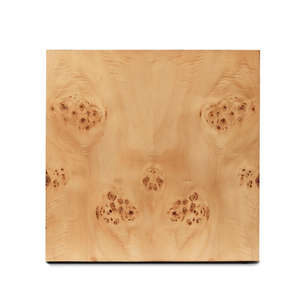 De Burl Cube bijzettafel dankt zijn naam aan het prachtige patroon van het FSC™ gecertificeerde burlhout dat gebruikt is bij de constructie. Beroemd om zijn kenmerkende en ingewikkelde nerfpatronen, met wervelingen, knoesten en onregelmatigheden, is elk stuk werkelijk uniek. Ontworpen als een perfecte kubus combineert de tafel op harmonieuze wijze geometrische eenvoud met ingewikkelde materialiteit. De strakke lijnen en minimalistische vorm bieden veelzijdigheid, waardoor het een aanvulling is op een verscheidenheid aan interieurstijlen terwijl het opvalt als een opvallend middelpunt.