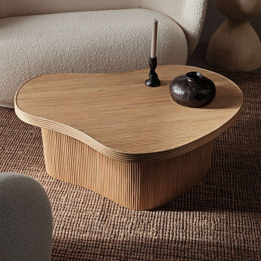 De Isola salontafel combineert natuurlijke charme met modern design. Het oppervlak, handgemaakt van rotan, voegt een element van organische schoonheid toe aan elke ruimte. De zacht gebogen vorm van de tafel biedt een zachte, organische expressie en is daarmee een verfijnd en warm middelpunt voor je woonkamer.