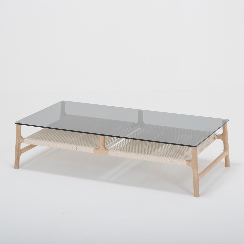 Bent u op zoek naar een salontafel die uw woonkamer niet zal vervuilen met zijn blokachtige aspect? De Fawn salontafel is het perfecte stuk: perfect om een open en luchtige ruimte te houden! De combinatie van natuurlijk eikenhout en transparant gehard glas maakt het een minimalistisch en delicaat stuk dat perfect in uw woonkamer past. Ook verkrijgbaar in vierkant formaat.