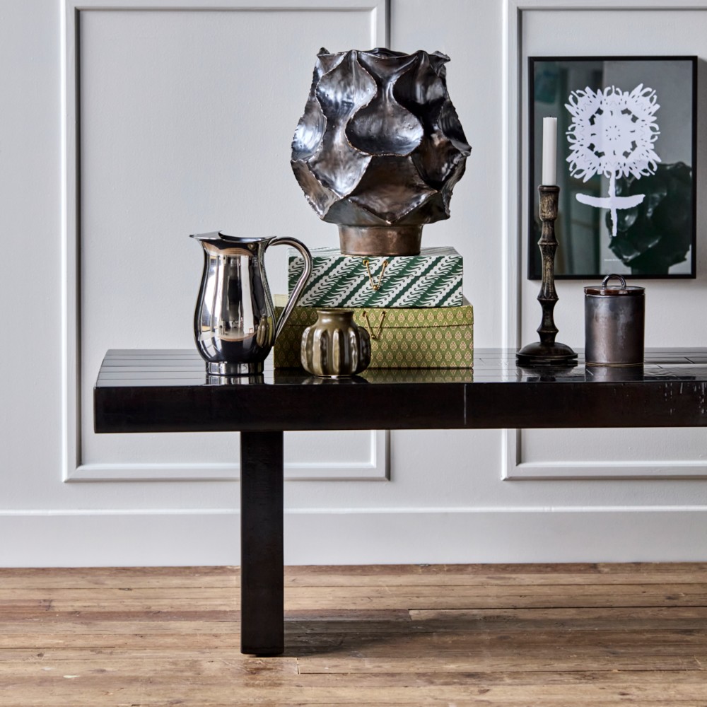 De solide kruisvoet versterkt zijn sculpturale aanwezigheid, terwijl de handgemaakte vervaardiging de kwaliteit en aandacht voor detail onderstreept die in elk detail is verwerkt. Dankzij zijn visuele charisma staat hij op zichzelf, maar hij kan ook worden uitgebreid met minimalistische accessoires voor een nog spectaculairder effect.