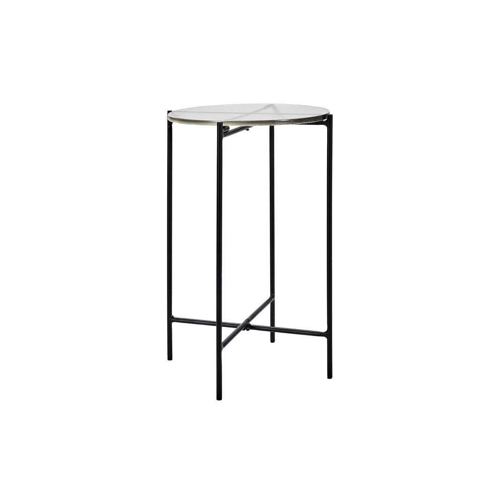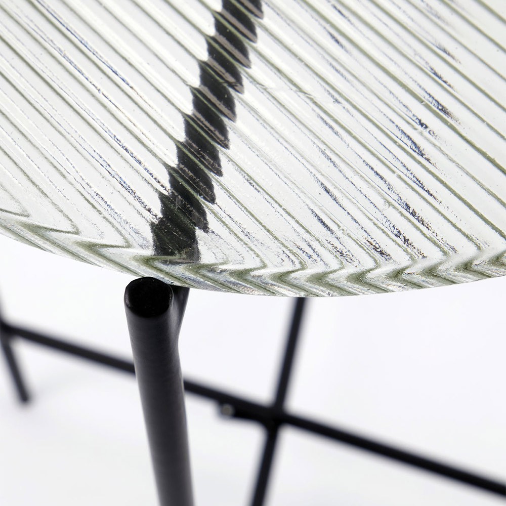 Ontdek de Tamu salontafel van House Doctor, met een dik, geribbeld glazen tafelblad dat rust op een slank ijzeren frame dat een licht, minimalistisch ontwerp voor je woonkamer creëert. Perfect naast de bank of een fauteuil, of zelfs als console in de gang.