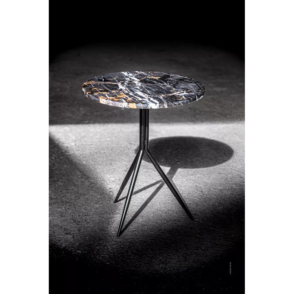 Het prachtige natuurlijke ontwerp van het marmeren tafelblad op zwarte metalen poten maakt deze referenties een tijdloze toevoeging aan elk interieur.