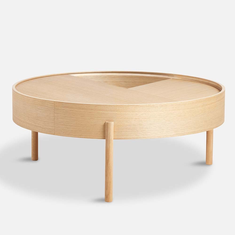 Laat u verrassen door de salontafel Arc van ontwerpers Ditte Bad en Julie Begtrup. voor het merk Woud. Wat maakt het speciaal? Een holle structuur en een mobiel blad, waardoor deze tafel een opbergruimte kan worden. Door de combinatie van functionaliteit, minimalisme en elegantie past de salontafel Arc perfect in de Scandinavische esthetiek. Kies uit verschillende houtvarianten en neem de Arc tafel die het beste bij uw interieur past.