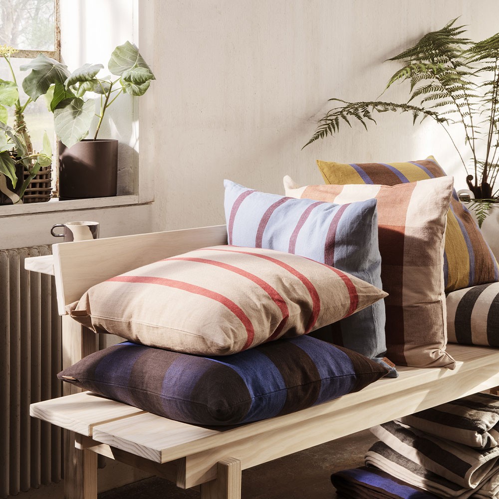 De Grand Kussencollectie van Ferm Living bestaat uit veel kussens gemaakt van linnen en katoen. Ideaal in een woonkamer op een bank, of in een slaapkamer op bed, elk kussen zal gemakkelijk zijn plaats vinden in uw huis. Deze rode strepen brengen de beige kleur van het kussen naar voren en maken het een middelpunt van je interieur.
