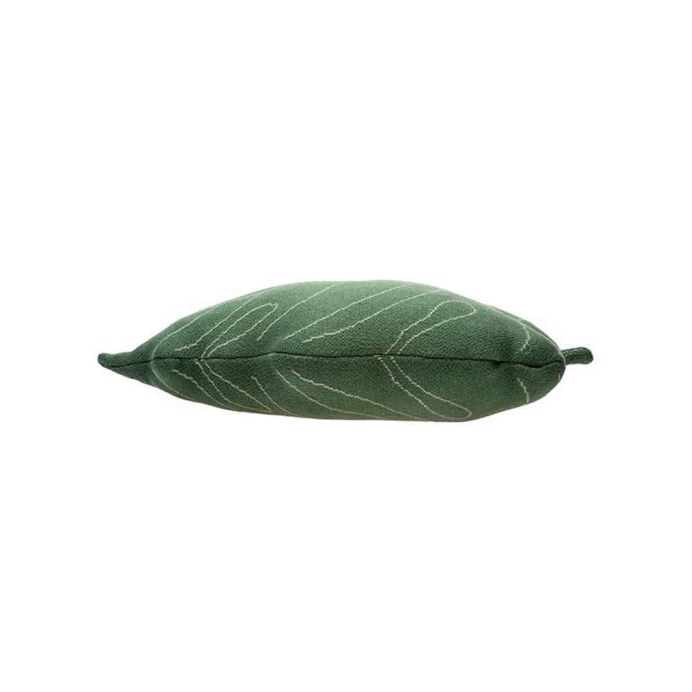 Ontdek het gebreide Baby Leaf kussen van Lorena Canals in de vorm van een Monsterablad in de kleuren groen en lichtgroen. De buitenkant is gemaakt van zacht 100 katoenen breisel en gevuld met zachte polyfill.