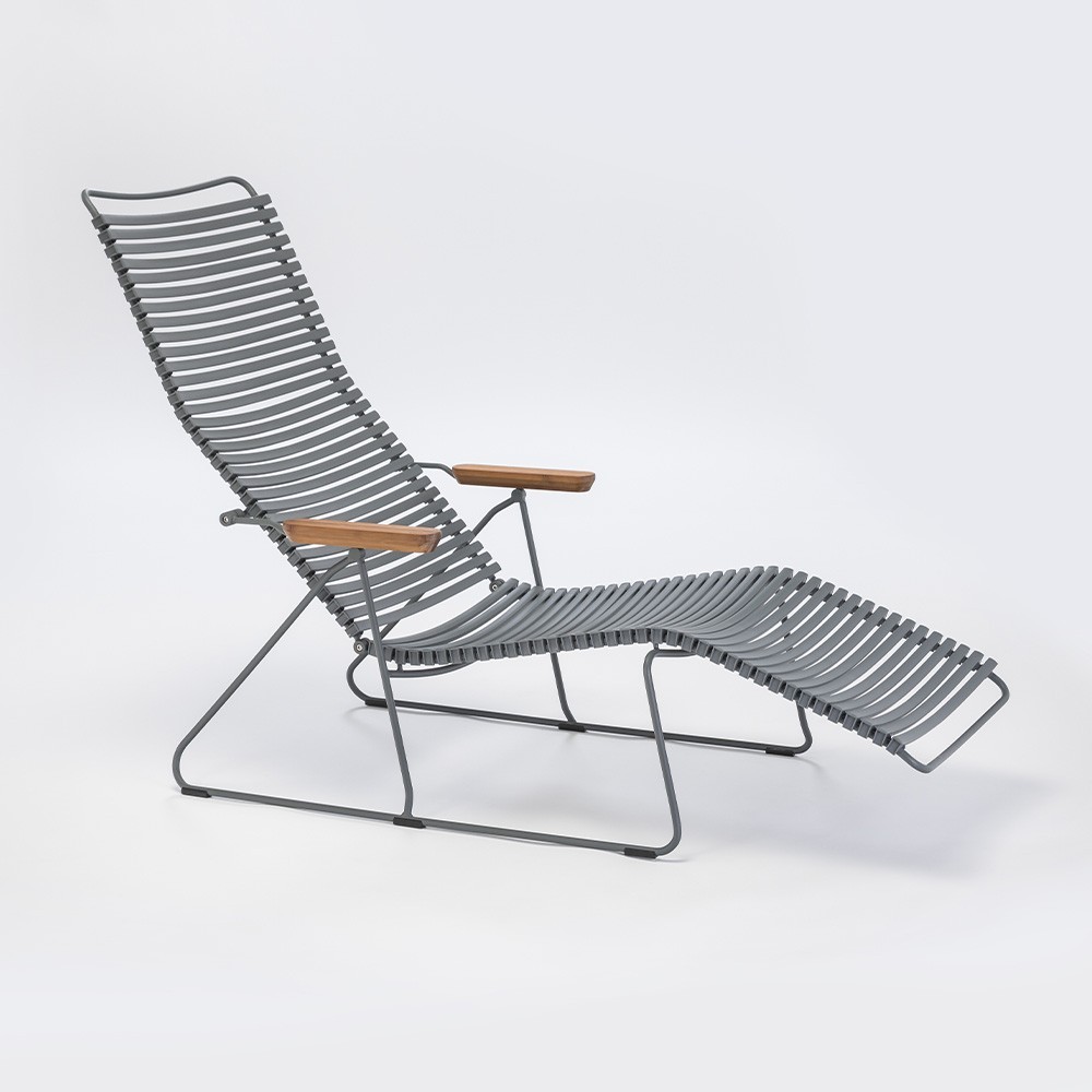 Deze mooie Click lounge chair, ontworpen door Henrik Pedersen voor Houe, is een perfect product om je tuin op de mooiste manier in te richten. Met zijn gepoedercoate grijze metalen structuur, zijn brede donkergrijze kunststof lamellen die zijn vastgeklikt en zijn bamboe armleuningen, is deze stoel licht en stijlvol. De grote verstelbare zitting zorgt voor optimaal comfort met de zekerheid dat u heerlijk in deze stoel kunt liggen. Ideaal voor buiten, deze Click-stoel zal gemakkelijk zijn plaats vinden dankzij zijn strakke en moderne uitstraling. Verkrijgbaar in vele kleuren, de Click lounge stoelen zijn aanpasbaar aan elk exterieur.