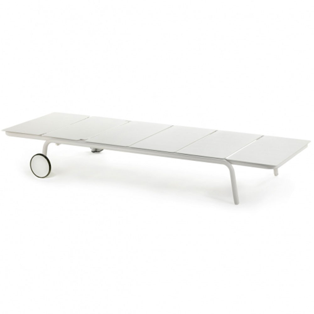 De August outdoor collectie van Vincent Van Duysen is verrijkt met een elegante chaise longue. Kenmerkend voor Van Duysens stijl is de creatie teruggebracht tot de essentie, zonder haar kracht te verliezen. Verkrijgbaar in gepoedercoat aluminium in drie kleuren: zwart, eucalyptusgroen en zand.