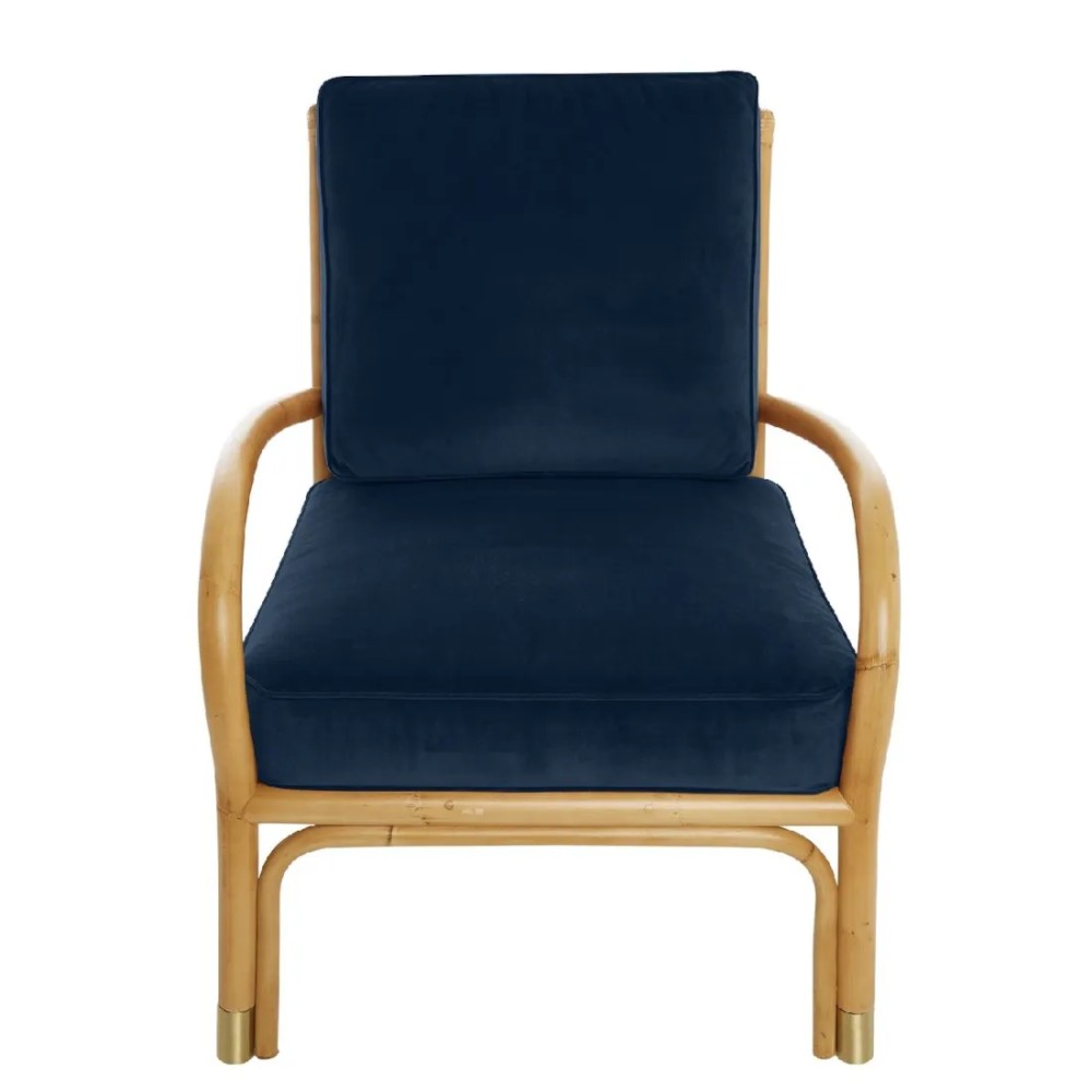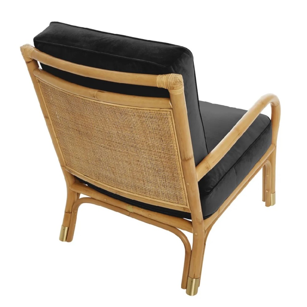 Het kussen, dat volledig in Frankrijk is gemaakt, is gevuld met bi-density schuim met een hoge veerkracht voor langdurig comfort. Dankzij de geraffineerde fluwelen bekleding past de Riviera fauteuil harmonieus in een leren salon of tussen massief houten meubels. Het zorgvuldig vervaardigde vlechtwerk van dubbele dikte maakt de fauteuil van achteren net zo aantrekkelijk als van voren.