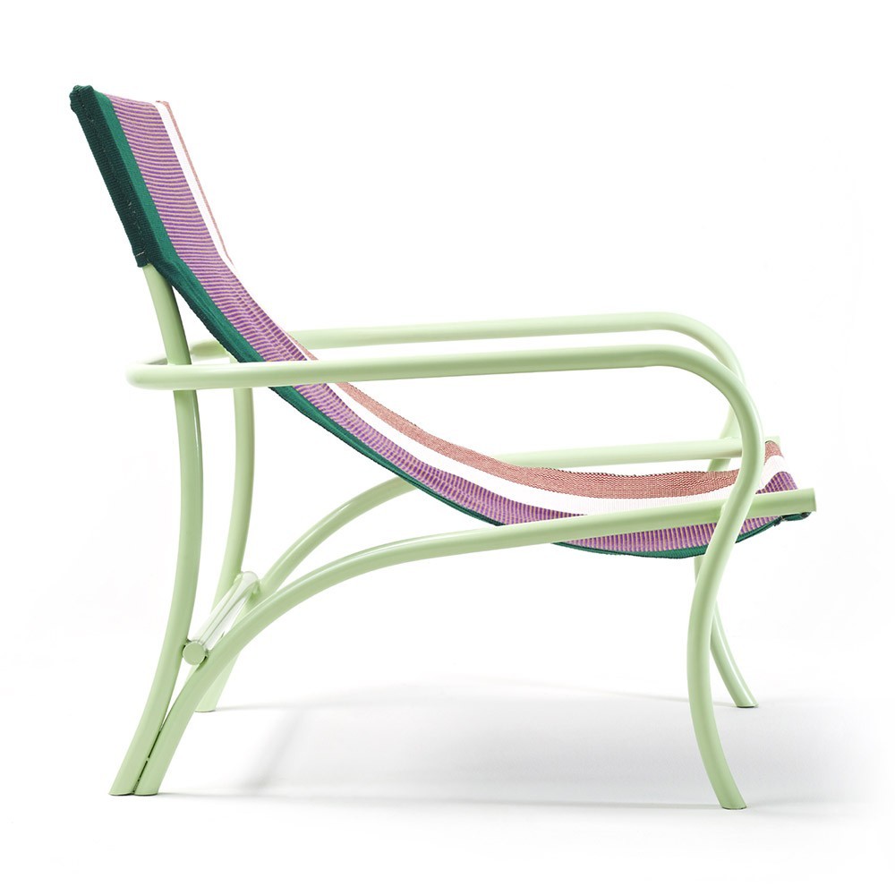 De groen / paars / rood & mint Maraca fauteuil, gesigneerd Sebastian Herkner voor ames, zal je verleiden met zijn kleurrijke tinten en origineel ontwerp geïnspireerd op traditionele Colombiaanse hangmatten. De hoes van 100% wol is met de hand geweven in de provincie Bolívar, aan de Noord-Colombiaanse kust. De Maraca-collectie is een echte uitnodiging om te reizen, zowel modern als vol menselijkheid.