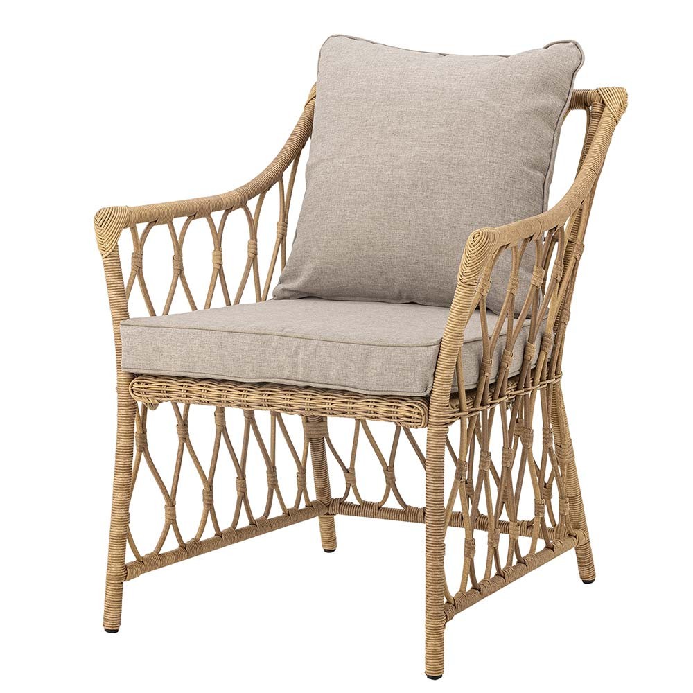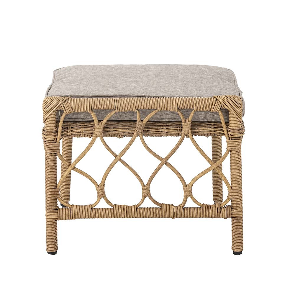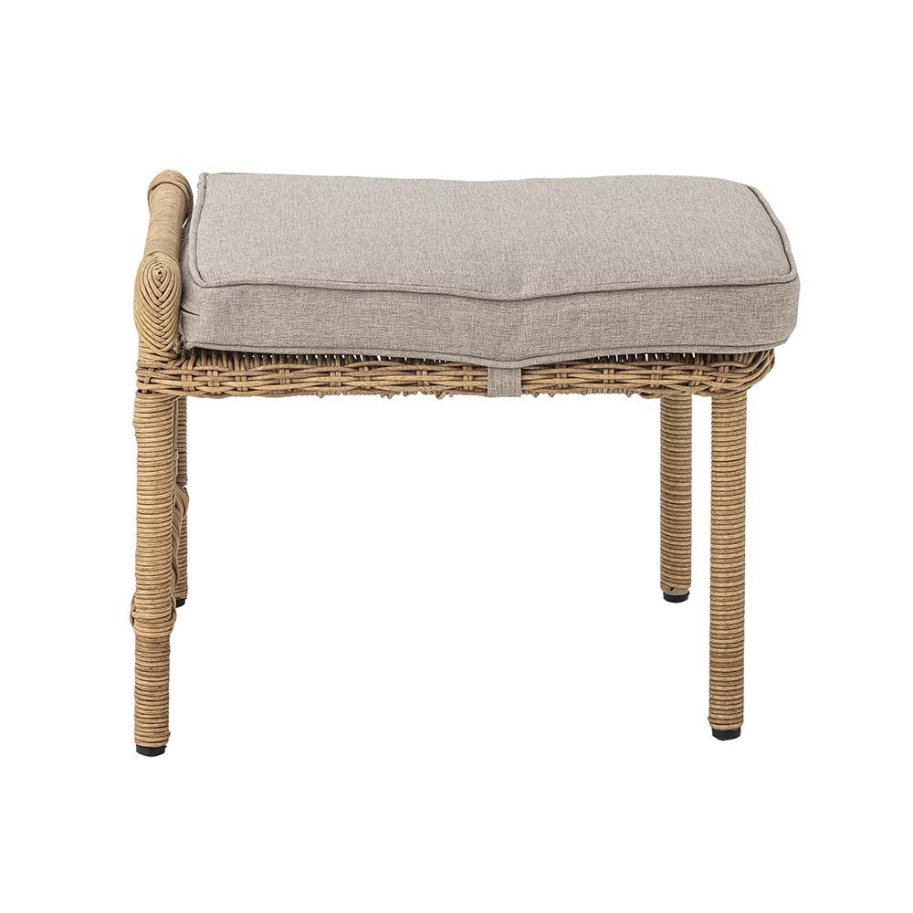 De Belluce loungestoel met kruk van Bloomingville heeft een ontwerp van geweven polyresin en polyester kussens met een charmant linnen effect. De praktische voetensteun kan eenvoudig onder de stoel worden opgeborgen om ruimte te besparen. Wij raden aan om buitenmeubels in overdekte ruimtes te plaatsen.