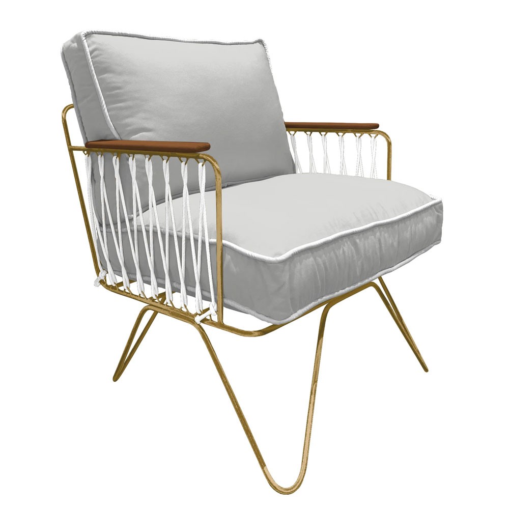Comfortabel dankzij de royale zitting en de grote zachte rugleuning, doen de witte katoenen touwen denken aan die van zeilboten, terwijl de waterafstotende stof met biezen van de kussens doet denken aan de ligstoelen van de Côte d'Azur, de bakermat van de Franse Rivièra. hij laat los.