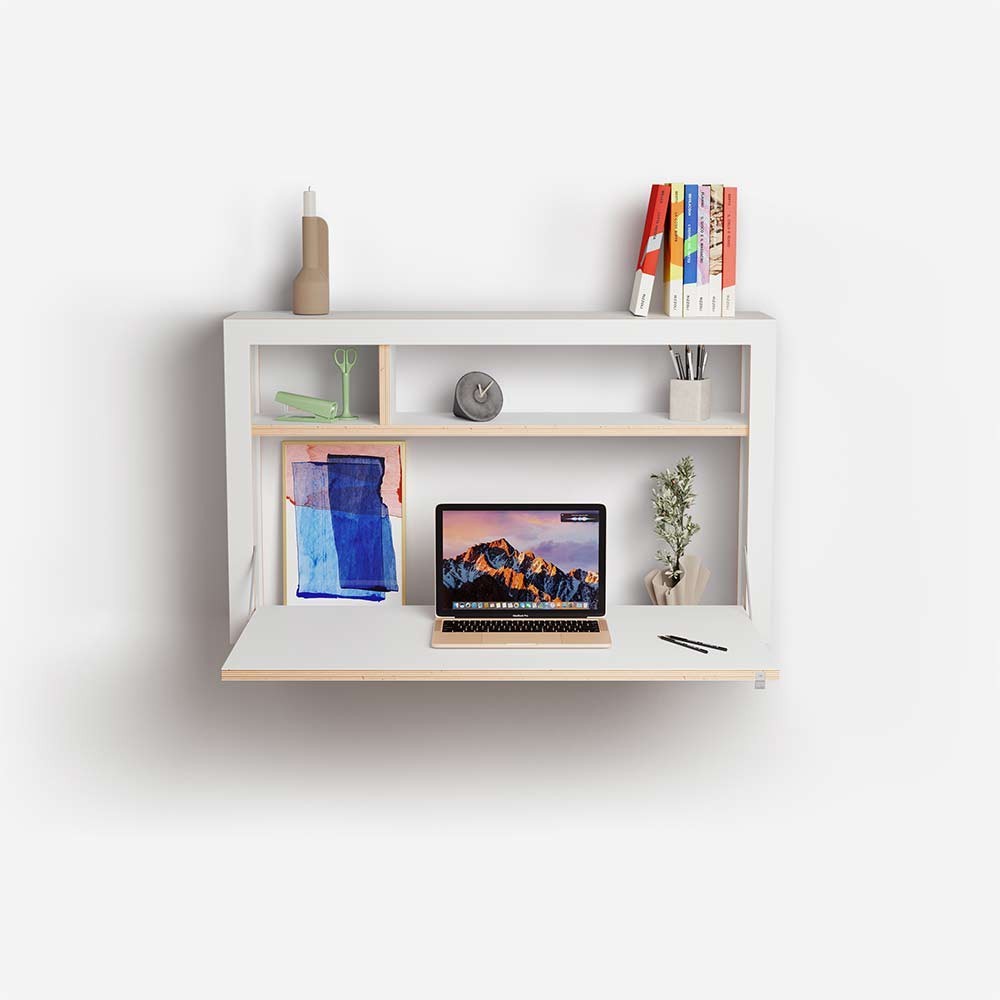 Stel dat je een compleet werkstation nodig hebt. Dus eentje met een beeldscherm, een groot werkoppervlak en opbergruimte voor dossiers. En niet alleen een schaar, pen en papier. Maar als je absoluut geen ruimte wilt opgeven voor zo'n complete werkplek met een werkblad van 90x50 cm, dan kun je kiezen voor een Fläpps secretaire van 100x60x20.
