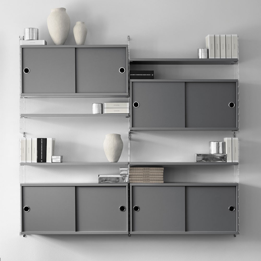 Planken in glanzend gelakte MDF uit het String rekken- en opslagsysteem. De planken zijn gemakkelijk te verplaatsen en als u extra opslagruimte nodig heeft, kunt u meer planken en rekken toevoegen. Perfect om een ruimte af te bakenen en een opslagmuur te creëren, de String planken zijn ideaal om een moderne en nette kant aan je woonruimte te geven. In een slaapkamer, woonkamer of zelfs een keuken, String-planken helpen u al uw bezittingen met elegantie en design op te bergen.