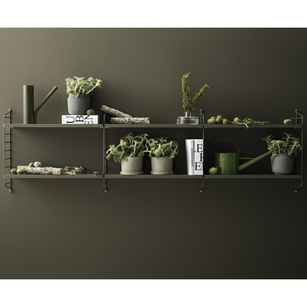 De String Pocket wandplank is volledig verwijderbaar en bestaat uit twee staanders van gelakt staaldraad waarin drie in hoogte verstelbare planken passen. Hij is praktisch en compact en kan overal worden opgehangen: in de gang, keuken, badkamer, slaapkamer of woonkamer. Maak een mooie wandopstelling door meerdere String-planken naast elkaar te plaatsen en zo een kleurrijke puzzel te maken!