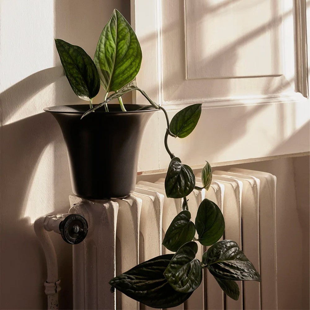 Ontdek de Spun Alu pot van Ferm living, volledig gemaakt van aluminium met een zwarte metalen afwerking. De mand heeft een elegante, slanke vorm dankzij het metalen reliëfproces dat ook de inspiratie was voor de naam.