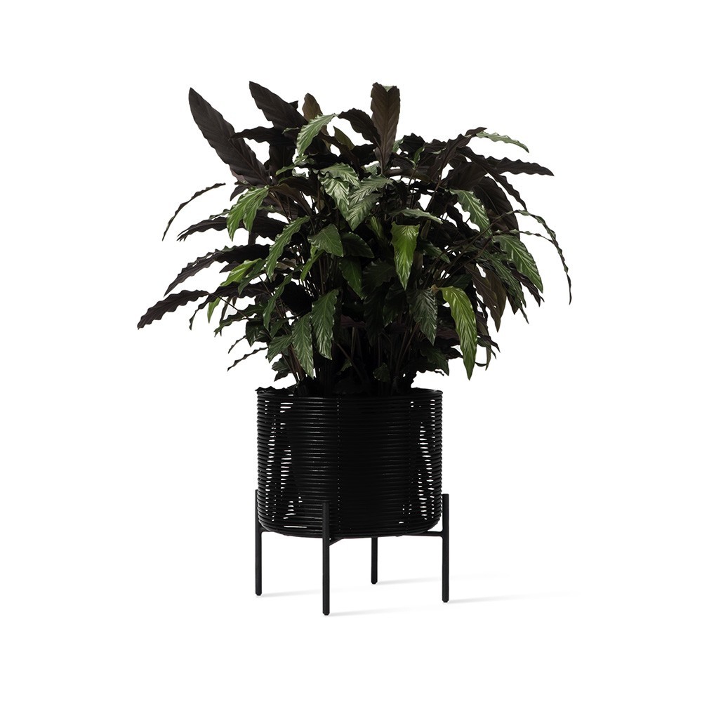 - HDPE rieten plantenmand met aluminium frame en zwart gepoedercoat stalen onderstel | Inclusief plastic schotel