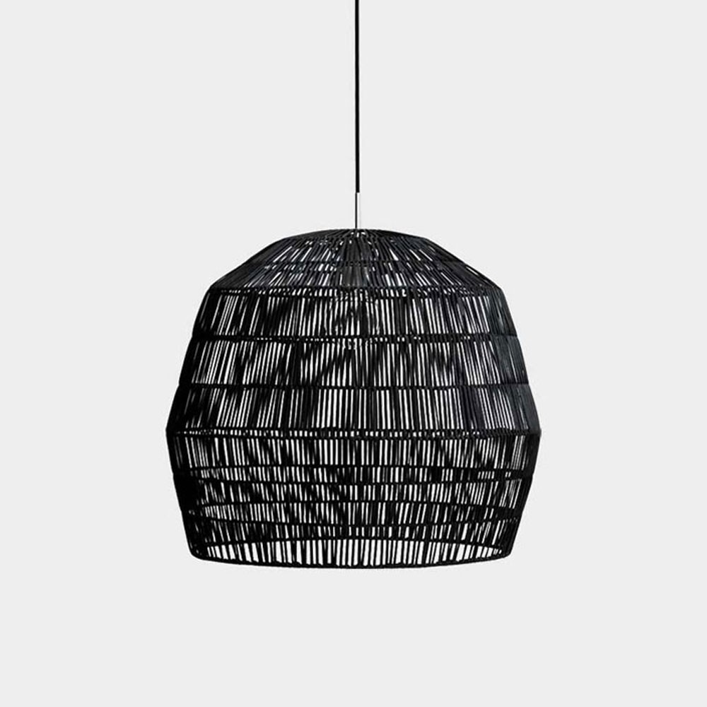 De zwarte hanglamp Nama 2, ontworpen voor AY Illuminate, valt op door zijn puur en organisch design. Deze collectie rotanlampen neemt ons mee naar een delicaat en rustgevend universum. Door zijn kleur en vorm past deze hanglamp zich gemakkelijk aan alle decoratiestijlen aan.
