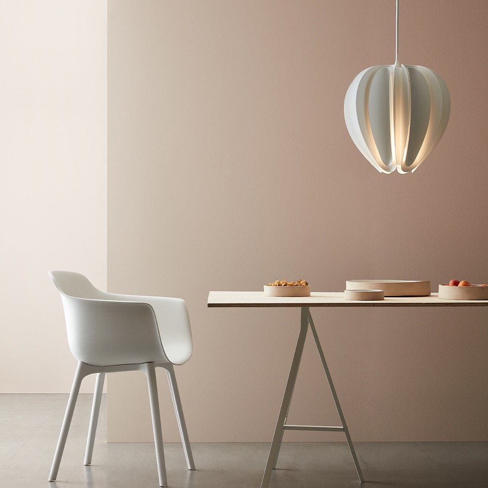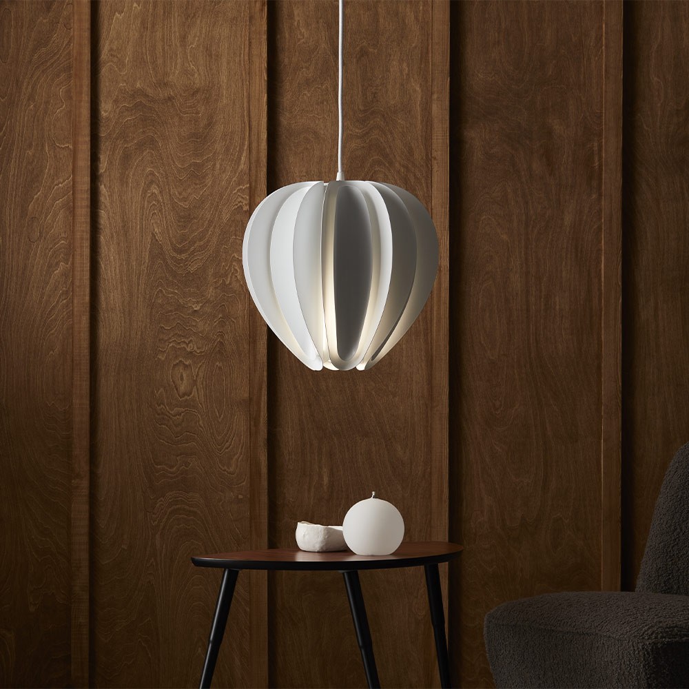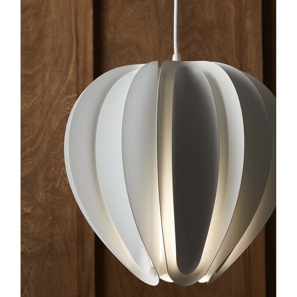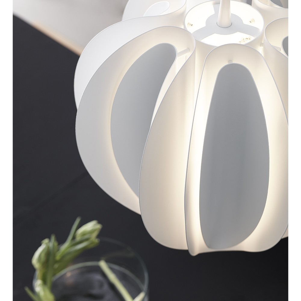 Ontdek de Tulip hanglamp van Belid, zijn naam komt van zijn vorm met zijn metalen onderdelen individueel gevouwen om de vorm van een tulpenbloem te verkrijgen. De ophanging verspreidt de lichtstroom op een zachte en warme manier in uw interieur, wat een lenteachtig tintje aan uw huis zal geven. Hij kan alleen of in een rij worden geplaatst.