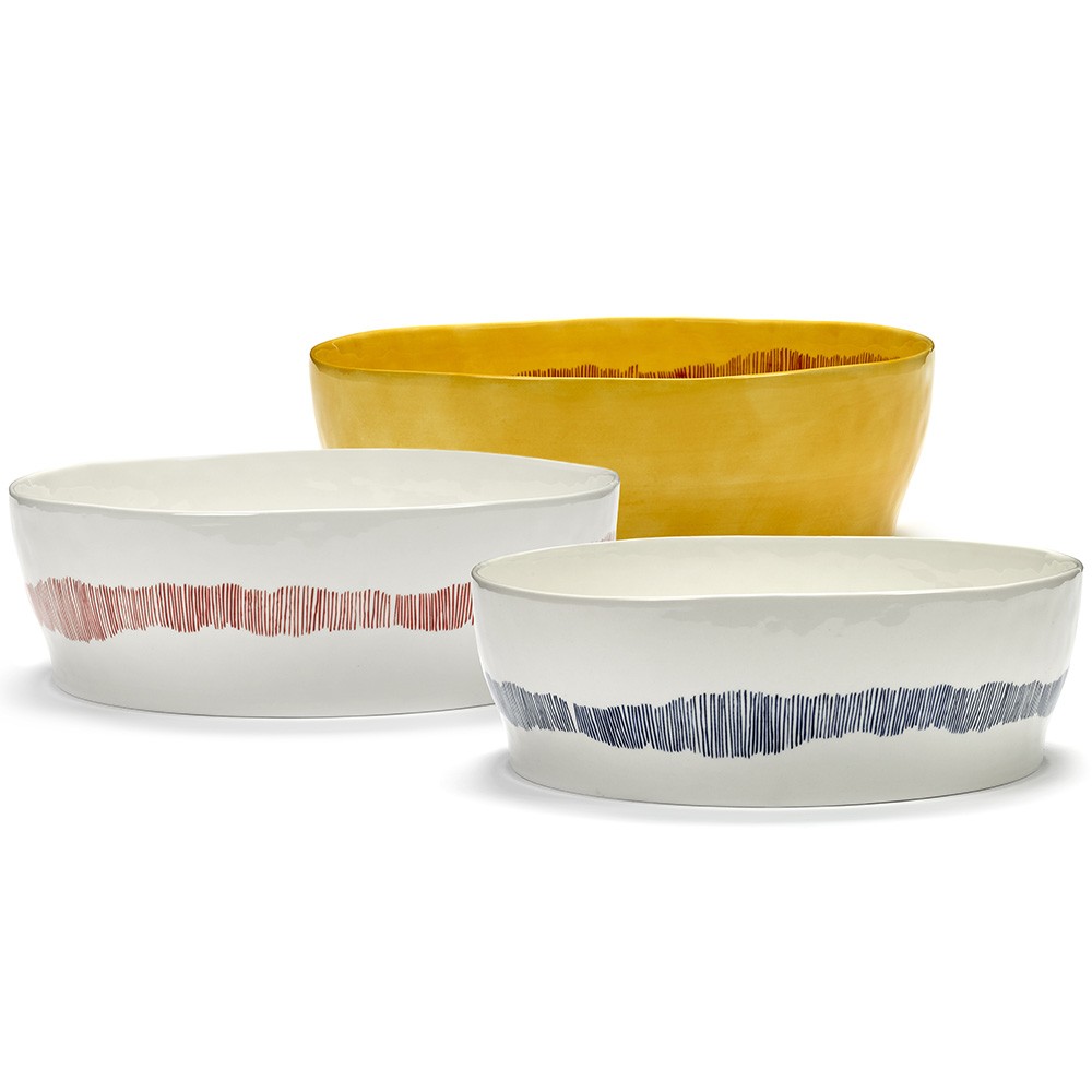 Als we gasten ontvangen, vinden we het altijd leuk om mooie gerechten, elegante sets en originele gerechten naar voren te halen. De Feast collectie, van Ottolenghi voor Serax, past perfect in deze situatie. Deze laatste presenteert een groot aantal producten met originele kleuren en designs, iets om een goede indruk te maken op uw gasten. Hier is deze elegante Feast slakom, wit en blauw, ideaal voor het serveren van uw groene of groentesalades, als voorgerecht of bij kazen. Je moet altijd mooie schalen bij de hand hebben, en het is nog beter als ze modern zijn, zoals die in de Feast-collectie. Ze zijn ook verkrijgbaar in vele kleuren om u een ruime keuze aan mogelijkheden te bieden, nu te vinden op onze site!