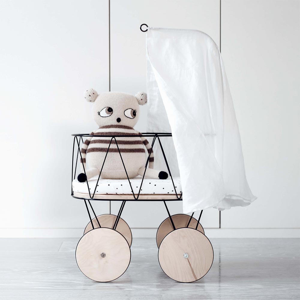 Herinner je je de Dolly Cot-wieg nog? Hier is een set om het mooier te maken! De Dolly Cot luifel bestaat uit een metalen standaard, een 100% linnen luifel en drie houten voorwerpen die aan een wit touw zijn geregen. Dankzij deze set heeft de baby van uw kind de droomwieg!