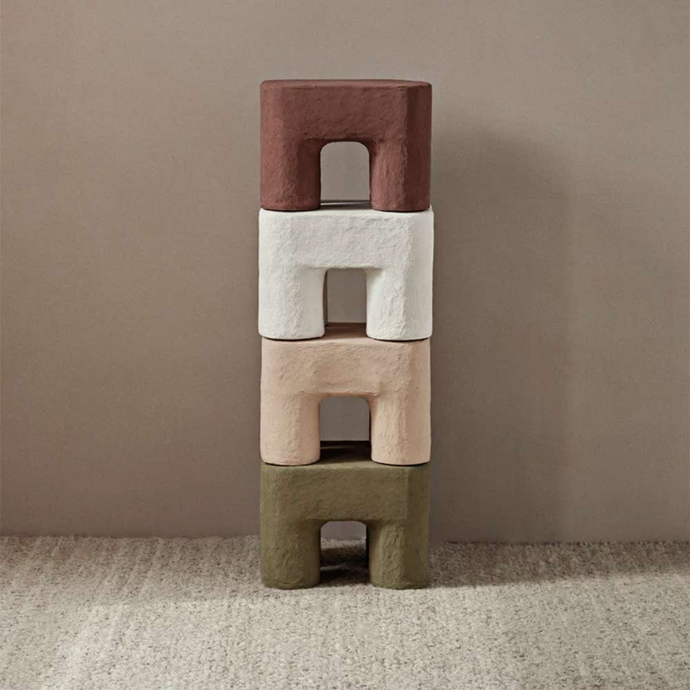 Dit kleine krukje, dat ook als laag bijzettafeltje kan worden gebruikt, is gemaakt van 50% post-consumer katoen en 50% FSC™ gerecycled karton. Elk Podo-krukje wordt met de hand gemaakt, zodat geen twee exemplaren hetzelfde zijn. Het kleine formaat en het speelse ontwerp maken het een veelzijdige en charmante toevoeging aan elke kamer.