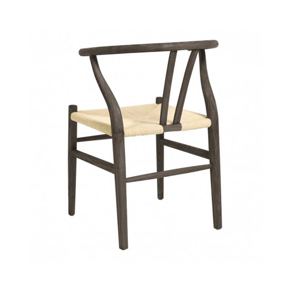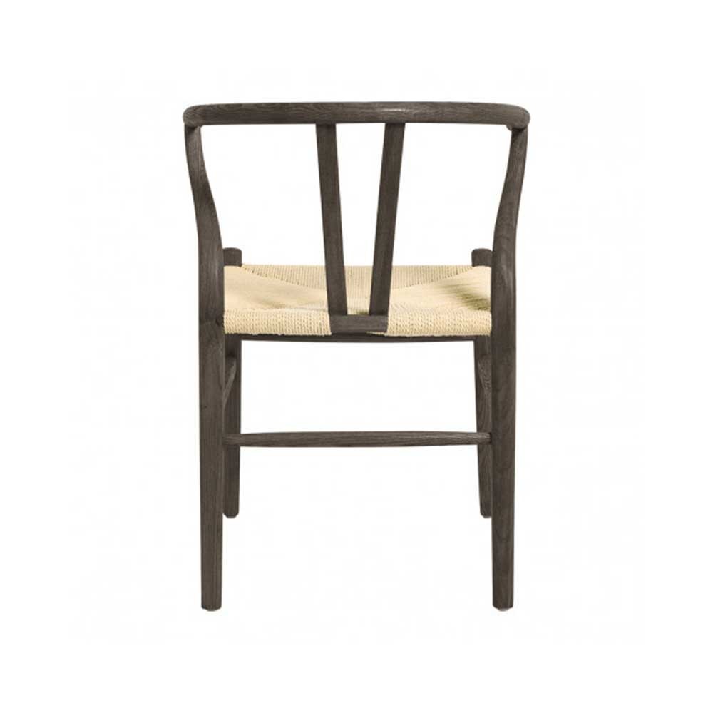De NJORD stoel in espresso afwerking heeft een tijdloze aantrekkingskracht. De gewelfde rugleuning en natuurlijk charmante geweven zitting maken het een essentieel stuk, ideaal om elke tafel op te fleuren.