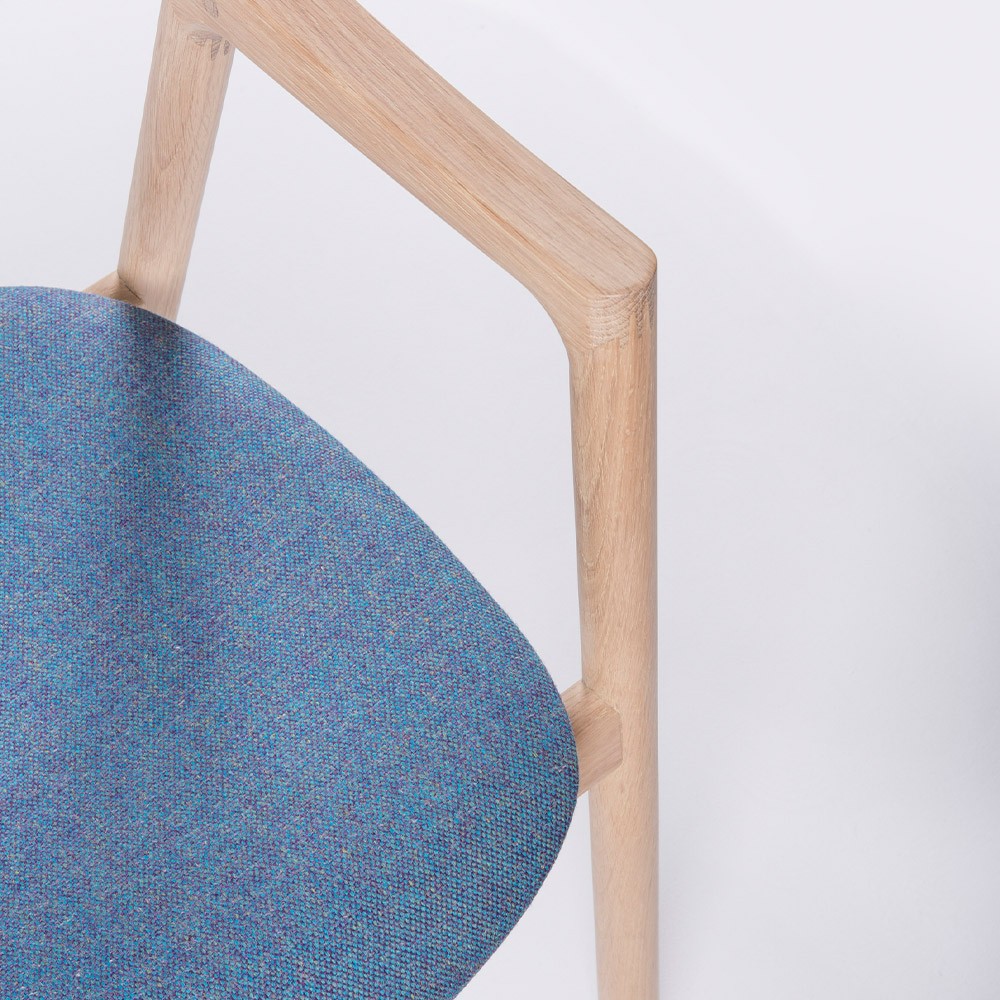 Als de artisanale kwaliteit van de meubels essentieel voor je is, dan is de stoel in eiken & blauwe stof Muna echt iets voor jou! De stoel Muna is van adembenemende kwaliteit: een zacht en vloeiend gevoel bij aanraking, een verfijnd ontwerp met een perfecte rugleuning, een lichtheid die uw leven gemakkelijker zal maken, ... Stoffen zitting verkrijgbaar in verschillende kleuren.