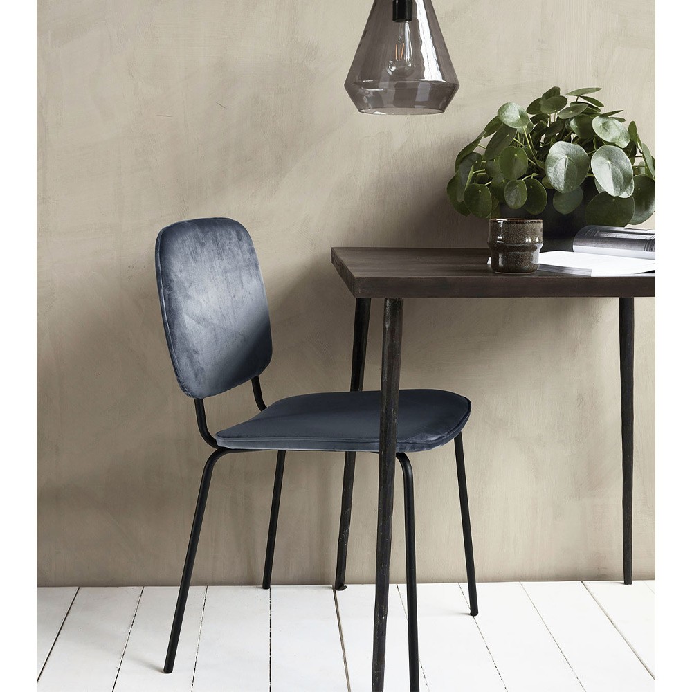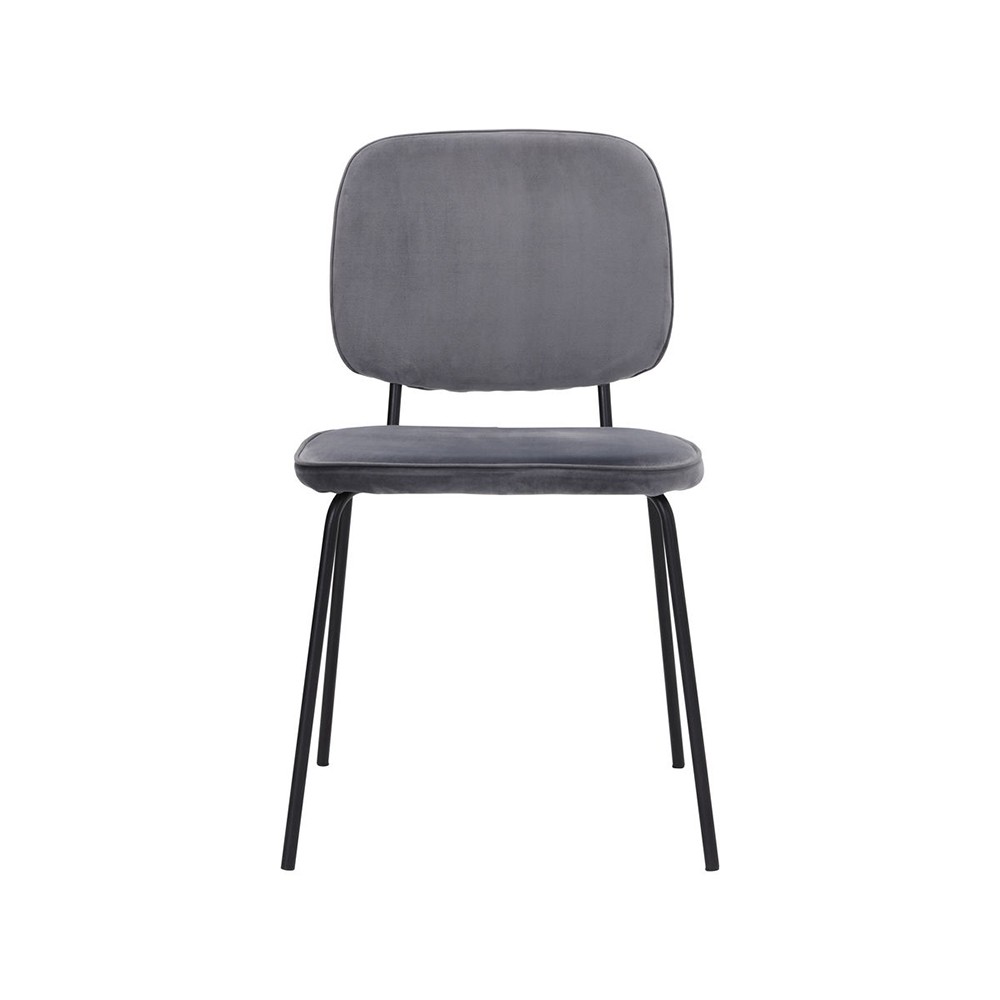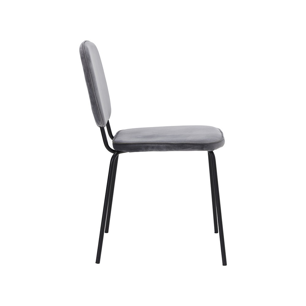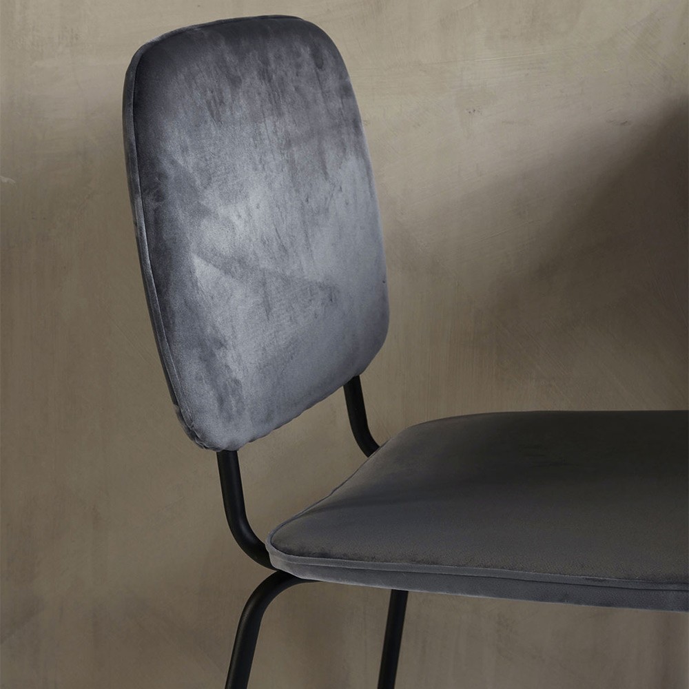 De Comma stoel van House Doctor heeft een stoere, minimalistische uitstraling met een grijze stof die contrasteert met het zwarte stalen frame. De stoel is eenvoudig, tijdloos en geschikt voor het hedendaagse huis, ongeacht het uiterlijk van je eettafel.
