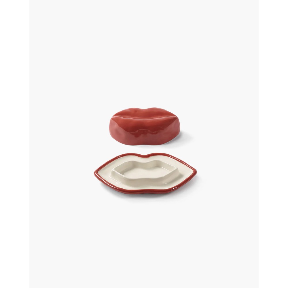De botervloot van Lips verwijst naar de rode lippen, een icoon van het surrealisme, en neemt een terugkerend motief over uit de juwelen en creaties van Wouters.