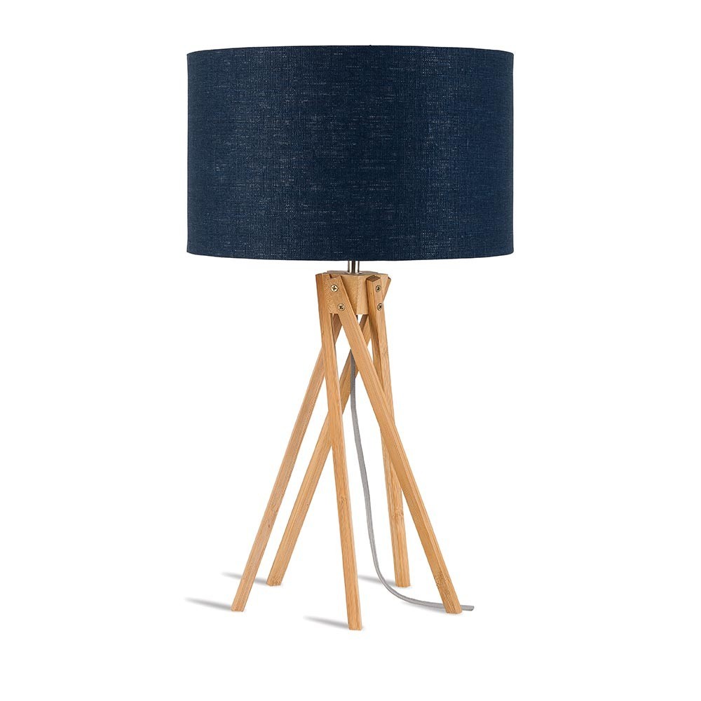 De denimblauwe linnen Kilimanjaro tafellamp, ontworpen door Good & Mojo, verspreidt een zacht licht dankzij de linnen kap. Het past gemakkelijk in elke kamer van het huis en nodigt tegelijkertijd de natuur uit met zijn bamboehouten structuur.