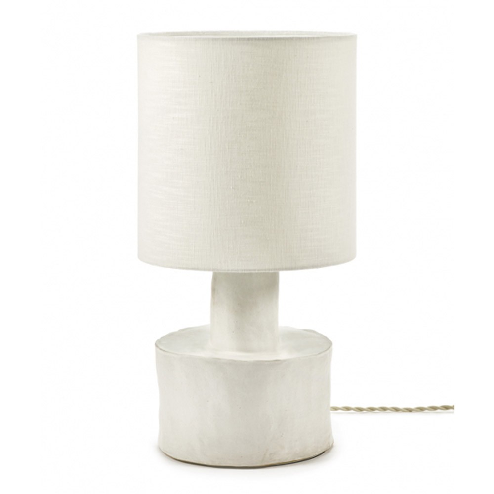 Dit is de Catherine tafellamp, gemaakt door de ontwerpster Marie Michielssen voor het merk Serax. De keramische voet draagt een witte linnen kap die een warm, sfeervol licht verspreidt. Het resultaat is een mix van texturen die deze lamp een moderne uitstraling geeft en hem zeer veelzijdig maakt. Dankzij zijn geraffineerde esthetiek wordt dit functionele object een decoratief object en maakt het uw interieur stijlvol af.