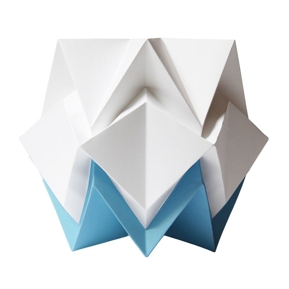 Ontdek de witte en hemelsblauwe papieren origami tafellamp Hikari ontworpen door Tedzukuri Atelier. Gemaakt van 240gr kwaliteitspapier, deze mooie slim gevouwen lamp met een strak design verspreidt een zacht en warm licht voor alle kamers van het huis.