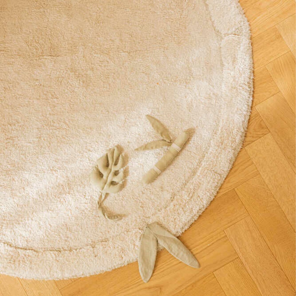 Ontdek het bamboeblad vloerkleed van Lorena Canals, getuft met extra zacht katoenfluweel gemengd met bamboe rayon. Het kleed is gemaakt in natuurlijke, ongeverfde kleuren, met een vleugje zachte olijf, perfect voor de babykamer. Wordt geleverd met een praktische katoenen draagtas met opdruk.