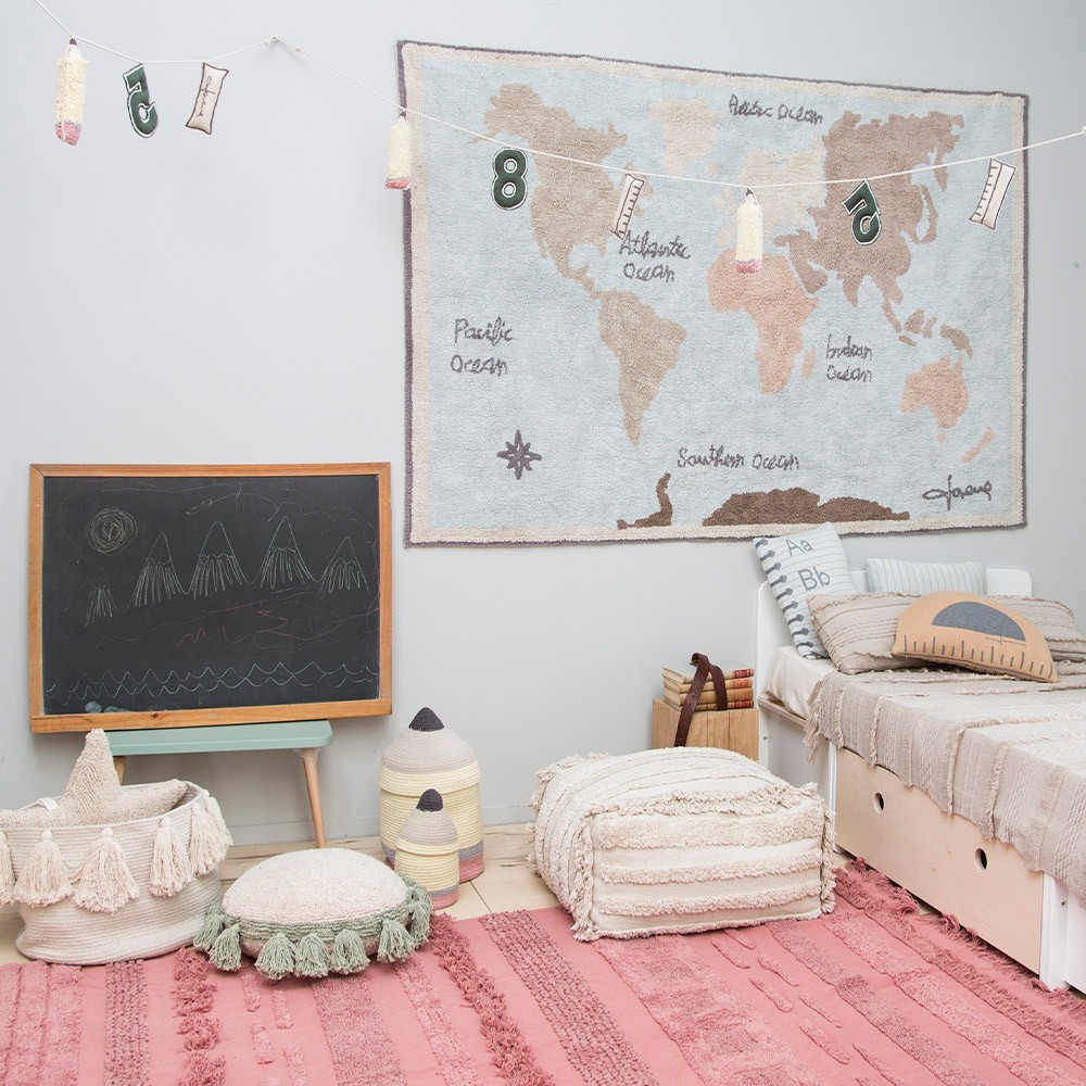 Dit wasbare Vintage Map vloerkleed van Lorena Canals zal zachtheid en comfort brengen in de kinderkamer. Door voor dit vloerkleed te vallen, zul je je kleine beginnende avonturiers in vervoering brengen. Te gebruiken als vloerkleed of wanddecoratie. Aarzel niet om de rest van het kinderassortiment van Lorena Canals op Moodntone te gaan ontdekken.