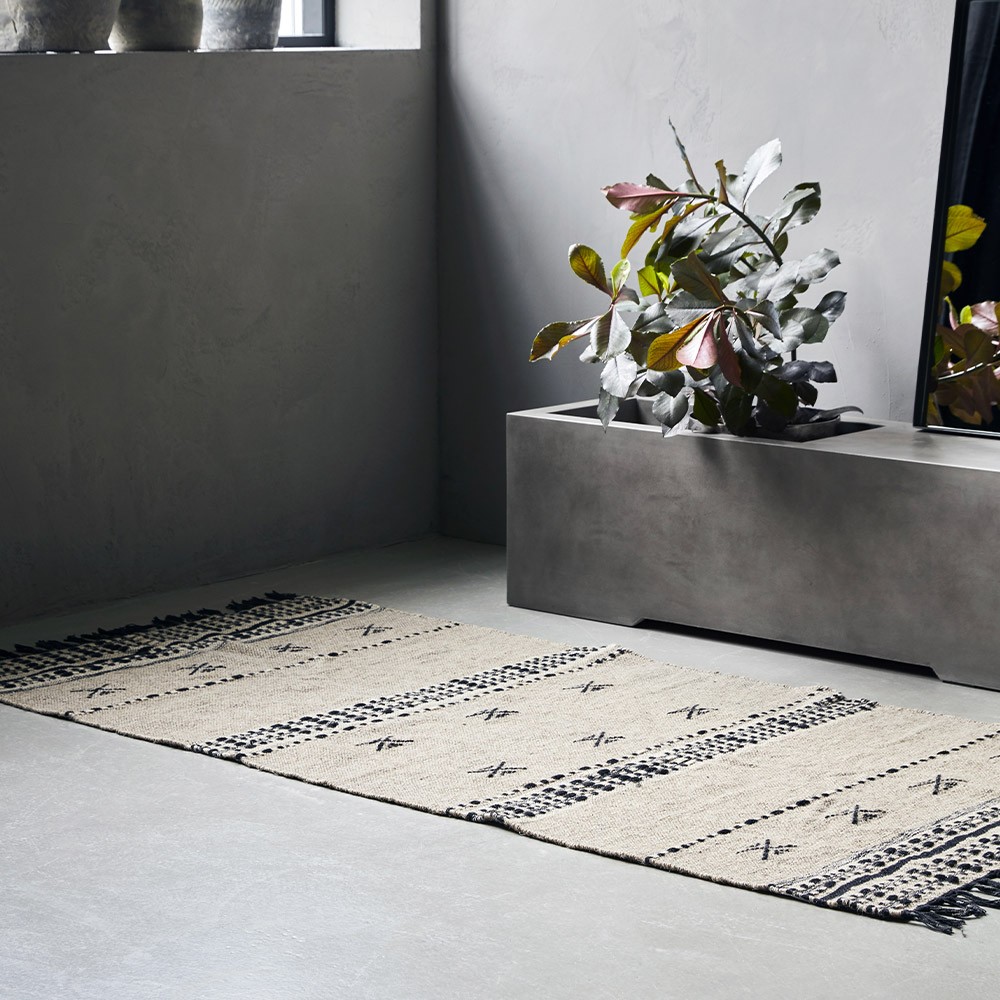 Dit vloerkleed Cros, voorgesteld door Kave Home, zal perfect zijn om uw woonkamer, uw entree of zelfs uw slaapkamer op te fleuren. Samengesteld uit wol en katoen, is het een accessoire dat duurzaam en milieuvriendelijk is. Hierdoor geef je in een handomdraai een warme sfeer aan je interieur. Qua design heeft House Doctor gekozen voor tijdloze patronen waardoor dit vloerkleed een zeker cachet aan je interieur kan geven.