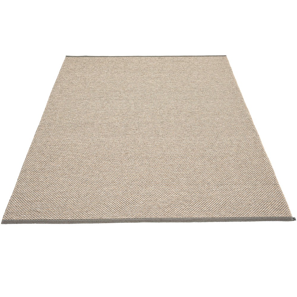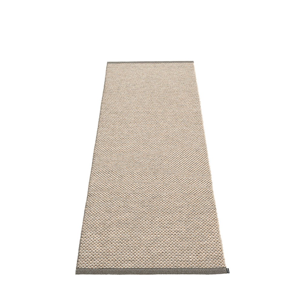 Geproduceerd in Dalarna, Zweden. Geweven op een traditioneel weefgetouw met houten shuttles. Een zeer praktische en gemakkelijk te onderhouden PVC-mat vervaardigd in Zweden. Geperste plastic tapes voor meer sterkte en duurzaamheid van het product met het Pappelina-logo op beide randen gedrukt.