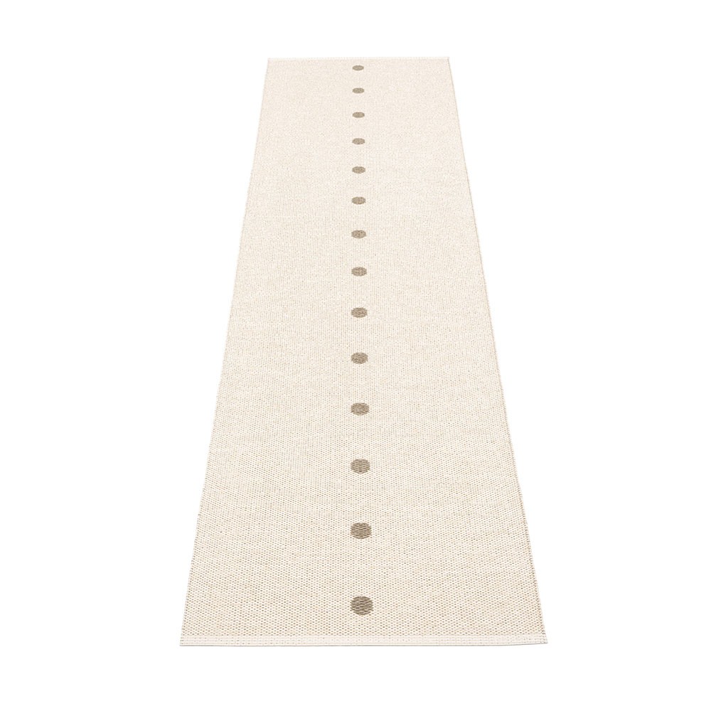 Geproduceerd in Dalarna, Zweden. Geweven op een traditioneel weefgetouw met houten shuttles. Een zeer praktische en gemakkelijk te onderhouden PVC-mat vervaardigd in Zweden. Geperste plastic tapes voor meer sterkte en duurzaamheid van het product met het Pappelina-logo op beide randen gedrukt.