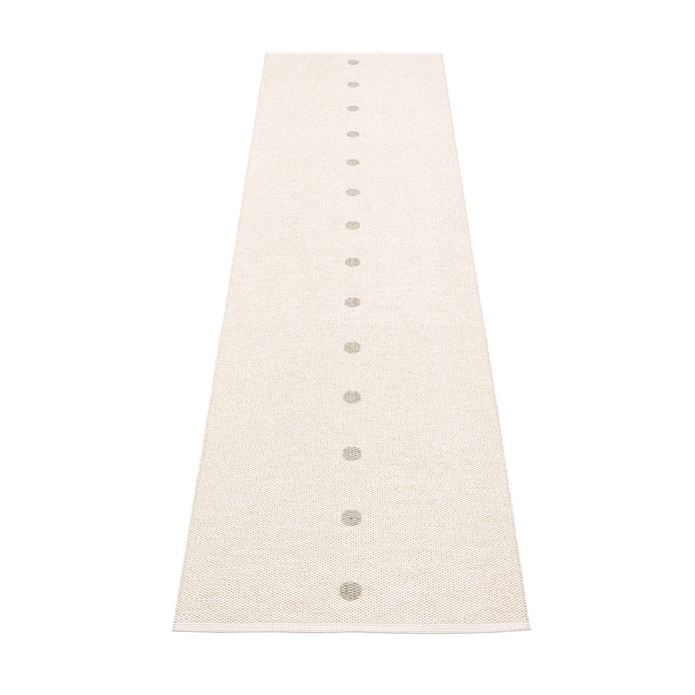 Geproduceerd in Dalarna, Zweden. Geweven op een traditioneel weefgetouw met houten shuttles. Een zeer praktische en gemakkelijk te onderhouden PVC-mat vervaardigd in Zweden. Geperste plastic tapes voor meer sterkte en duurzaamheid van het product met het Pappelina-logo op beide randen gedrukt.