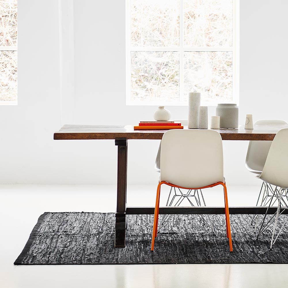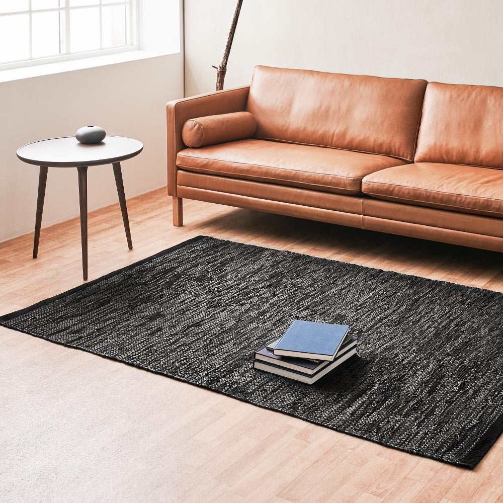 Het leer dat voor de vloerkleden wordt gebruikt, is afkomstig van gerecycled leerresten uit de mode-industrie. Bij het maken van een tas wordt het leer uit een verse huid gesneden. De overblijfselen van de huid worden restjes genoemd en worden als afval weggegooid. Rug Solid recycleert ze en gebruikt deze restjes. Ambachtslieden snijden leer tot touwen en weven ze met de hand, waardoor elk leren vloerkleed uniek is. Ontworpen in Denemarken, zal het zwarte leren vloerkleed van het merk Rug Solid perfect zijn in een gang, gang, woonkamer. Het zal uw interieur perfect afwerken dankzij zijn prachtige kleuren. Als u van natuurlijke elementen van hoge kwaliteit houdt, zult u zeker genieten van dit vloerkleed dat verkrijgbaar is in verschillende maten en kleuren.