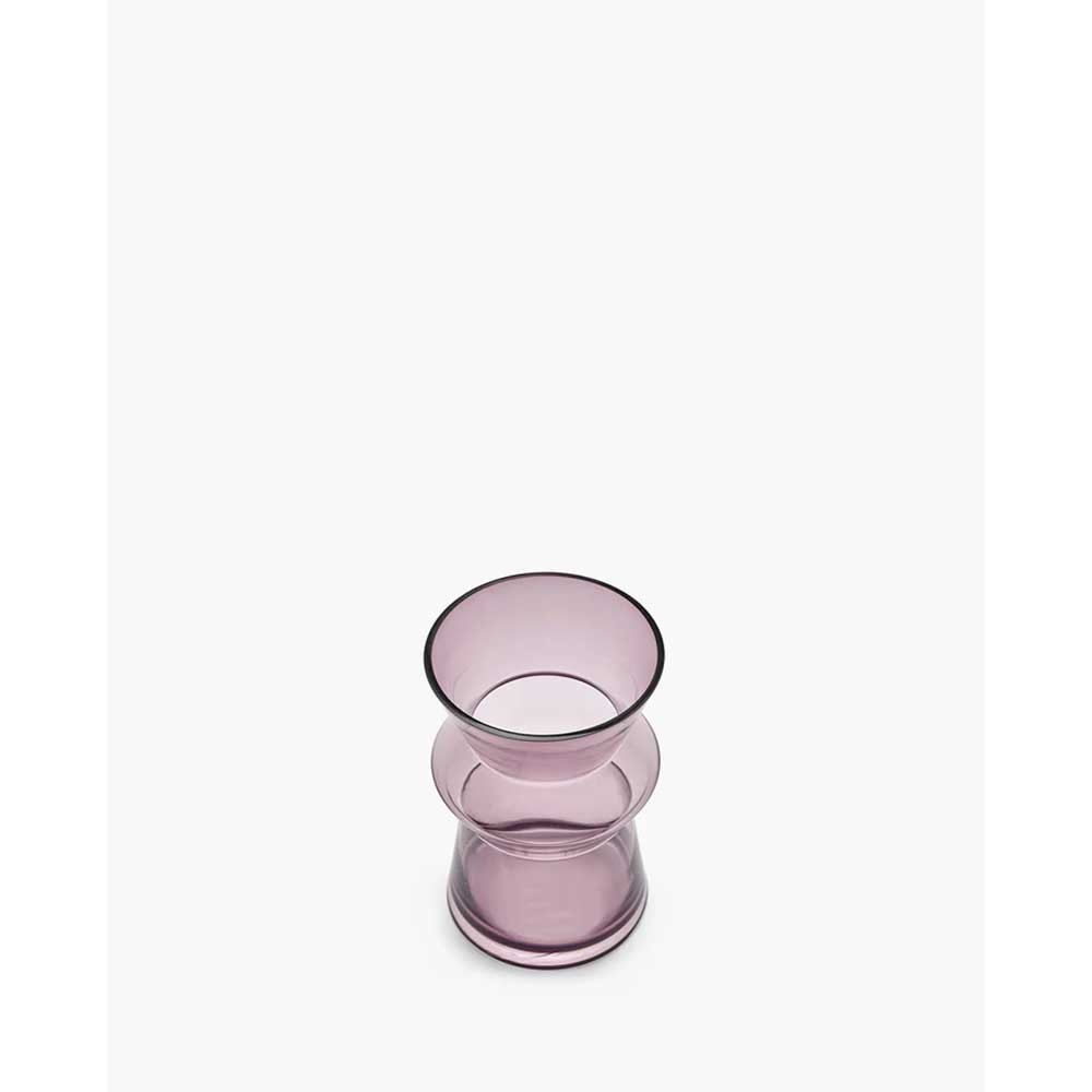 De Marie-Ann vaas, ontworpen door Marie Michielssen, herneemt een archetypische vorm in lichtpaars glas. Het contrast tussen de gladde transparantie van het glas en het ruwe uiterlijk van het gebruikelijke rode steengoed uit de collectie creëert een krachtig visueel effect. Het is een delicaat, verfijnd en karaktervol stuk.